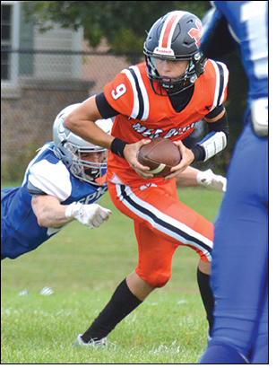 The game stayed tied at 7-7 until midway through the third quarter when a botched punt ricocheted off the back of a Mer Bleue player’s helmet and gave St. Peter a first down on Mer Bleue’s six-yard line.