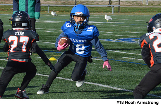 The U10 Cumberland Panthers will be joined on A-Cup Sunday by the U12 mosquito team which beat the Gloucester South Raiders 38-10 on three rushing touchdowns and a passing touchdown by quarterback Nico Scarfone. Channing Mailhot scored a rushing touchdown as well.